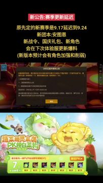 新公告:新赛季版本延期至9.24