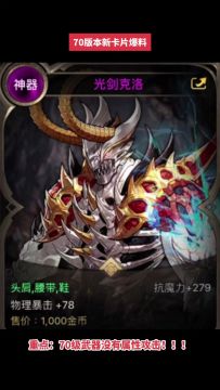 70版本所有神器卡片属性爆料