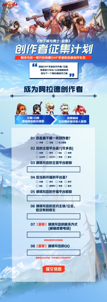 DNF手游生态创作者征集计划报名开启!