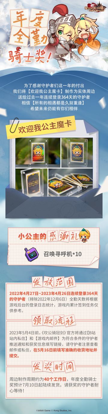 坎公2周年年度全勤骑士奖公布!