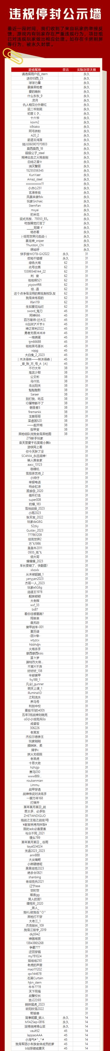 违规停封公示——1219