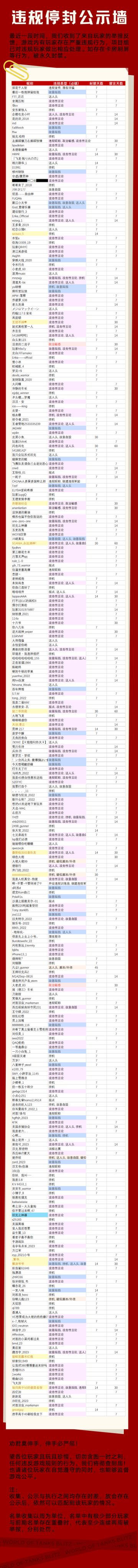 违规停封公示——0627