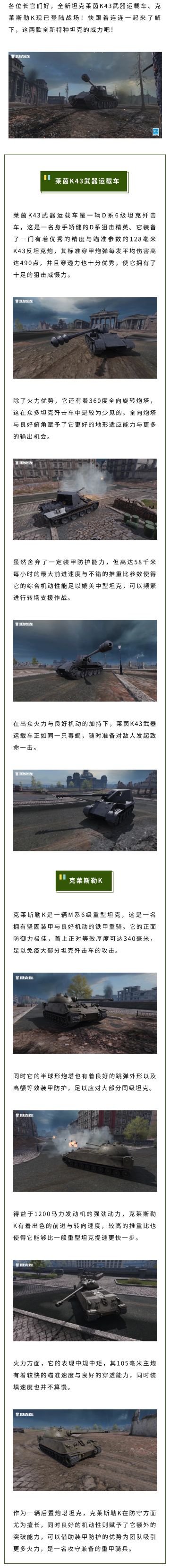 特种坦克莱茵K43武器运载车、克莱斯勒K持续上架中!