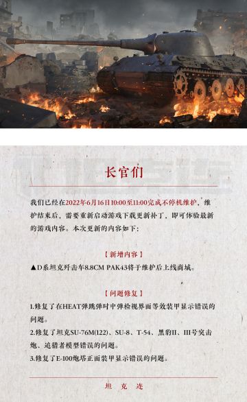 { "text": "#坦克连#更新公告 | 新增D系VI级金币坦歼、修复检视界面、装甲显示和模型等错误", "raw_text": "" }