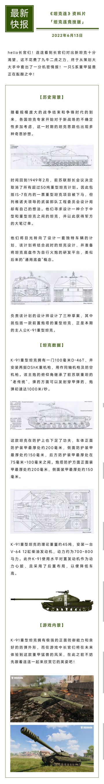 { "text": "#坦克连#【前瞻】S系重坦K-91数据披露!与钢铁猛兽更近一步吧!", "raw_text": "" }