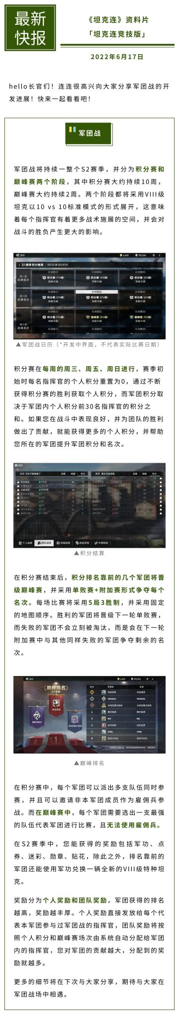 { "text": "#坦克连#【开发日志】军团战开发进展曝光!", "raw_text": "" }