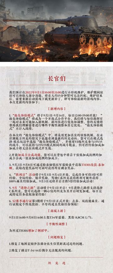 更新公告|“坦克学院”活动9月15日开放! 完成军衔挑战任务可获取“从不回头看爆炸”限时头像等多重好礼!#坦克连