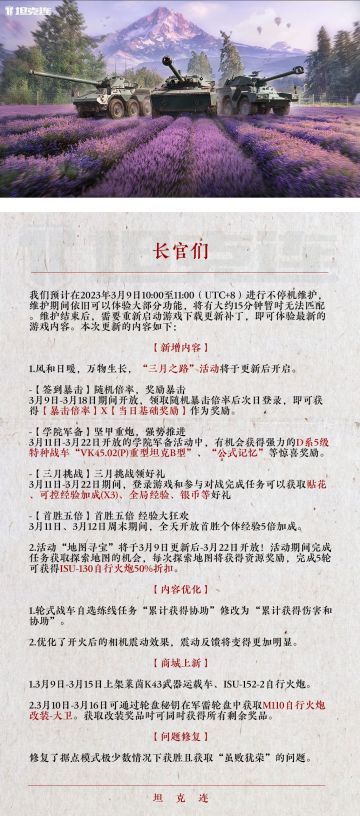 #坦克连# “三月之路”活动上线!签到奖励暴击、轮战任务优化等更新详情请查收!