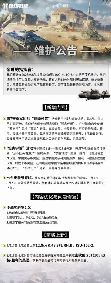 更新公告|第7赛季军团战“巅峰预言”活动即将开放!#坦克连