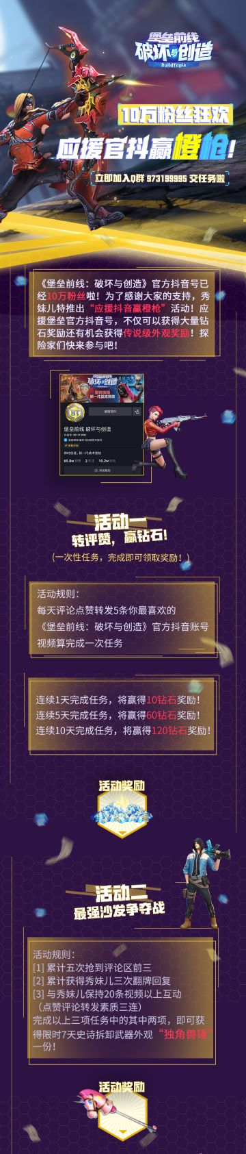 《堡垒前线:破坏与创造》10万粉丝狂欢 应援官抖赢橙枪!