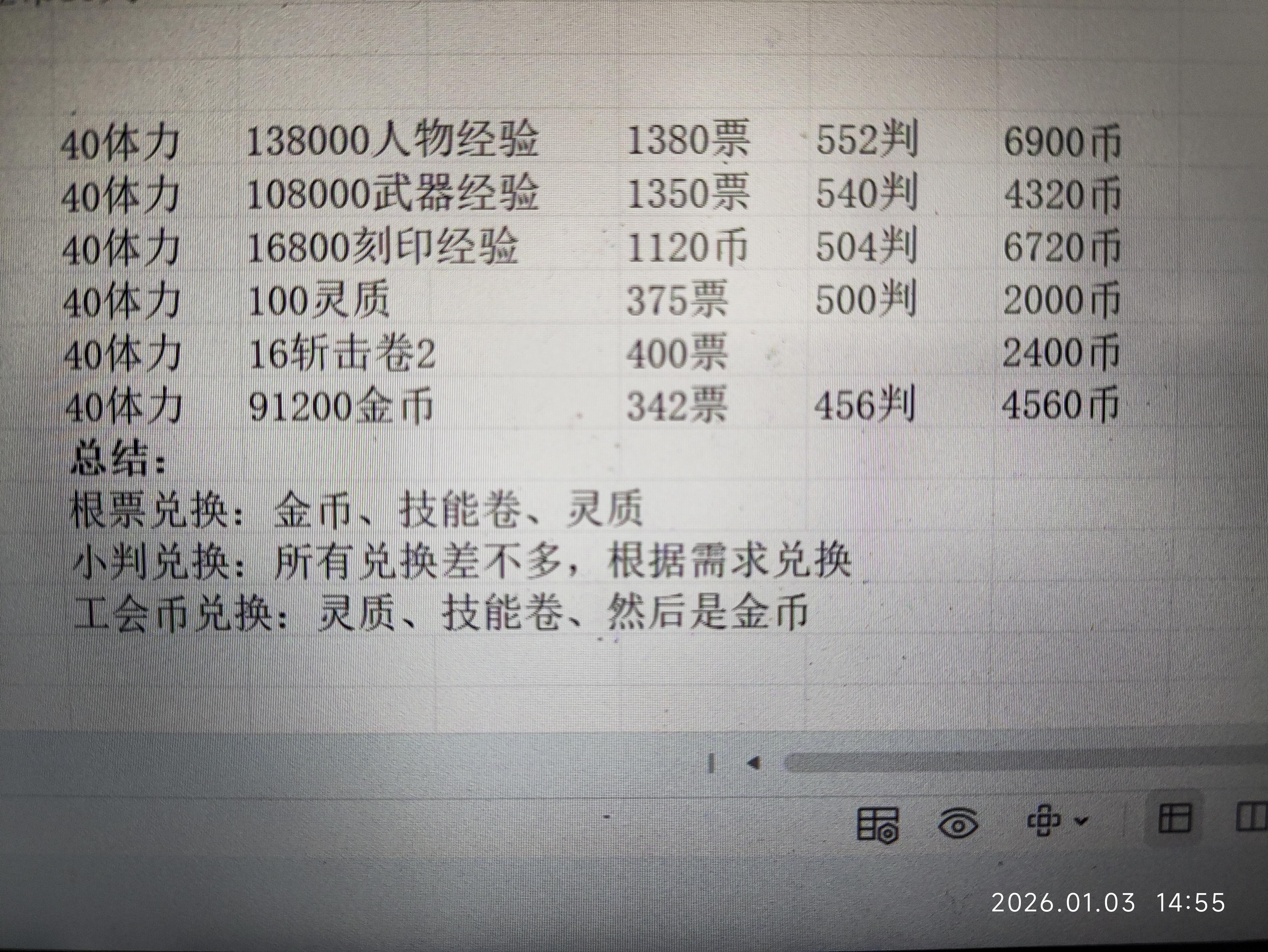 各商店材料兑换建议