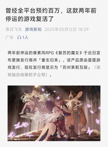 复苏的魔女 资讯