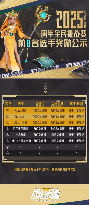 2025多多自走棋周年全民挑战赛前8名选手奖励公示
