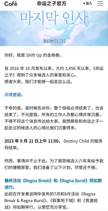 【啊?】金亨泰手游《天命之子》日服、韩服、国际服今日发布关服公告,将在2023年9月21日停止运营。 关服后将保留纪念应用程序,可以继续欣赏故事、角色、温泉,来留住大家的珍贵回忆。#天命之子#啊?