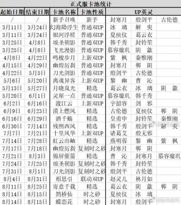 天地劫正式服卡池统计(8.14更新)