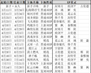 天地劫正式服卡池统计(2021.7.17更新)