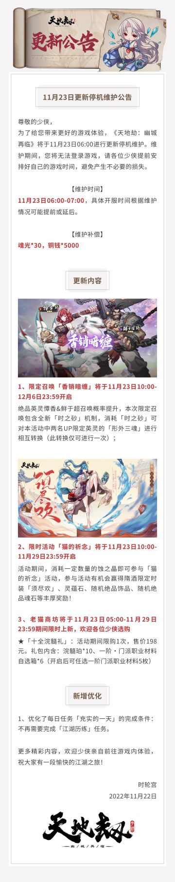 { "text": "更新公告丨限定召唤「香销暗缠」绝品英灵憛香&鲜于超召唤概率提升!隋酒皮肤登场!", "raw_text": "" }