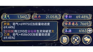 调手机时间刷资源、自动跃迁刷灵气、存意志等战力、圣人突破率
