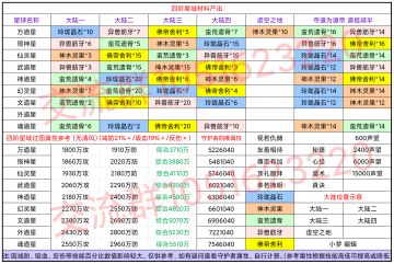 四阶星域材料产出及过图属性参考与事件