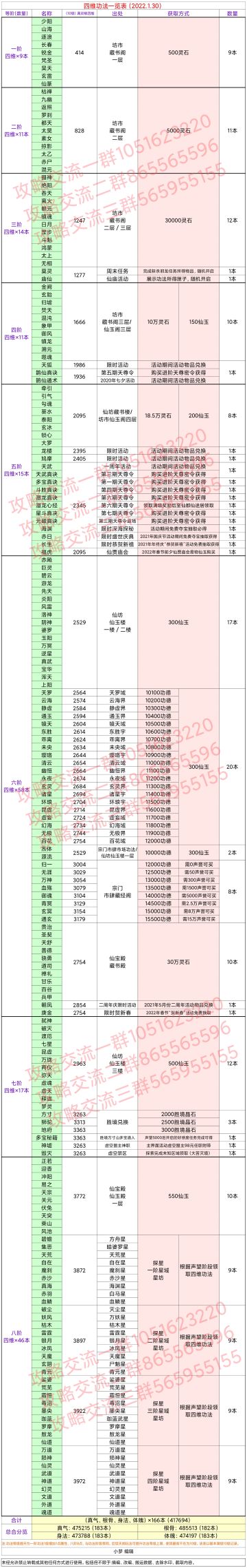 四维功法一览表(2022.1.30)