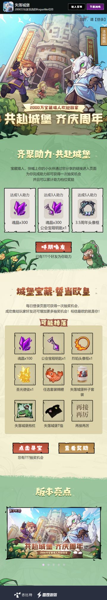 《失落城堡》3.5周年庆人拉人活动页面上线!任选套装锦鲤、3.5周年头像框、超多魂晶奖励等你来拿!