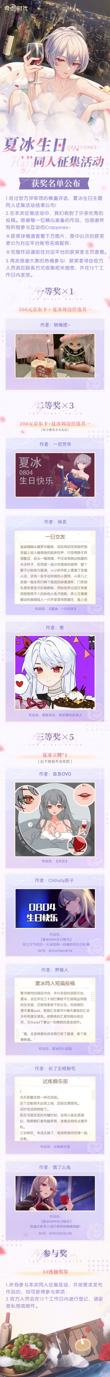 夏冰生日征集获奖名单公布