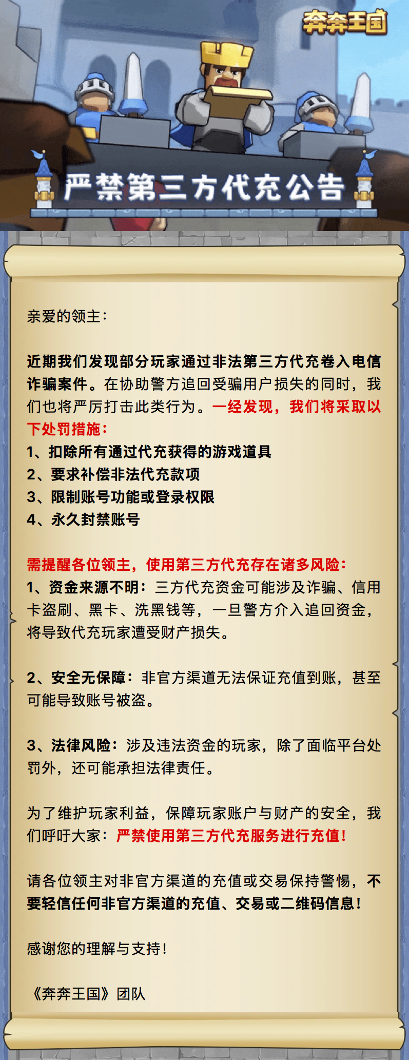 重要公告:《奔奔王国》严禁第三方代充公告