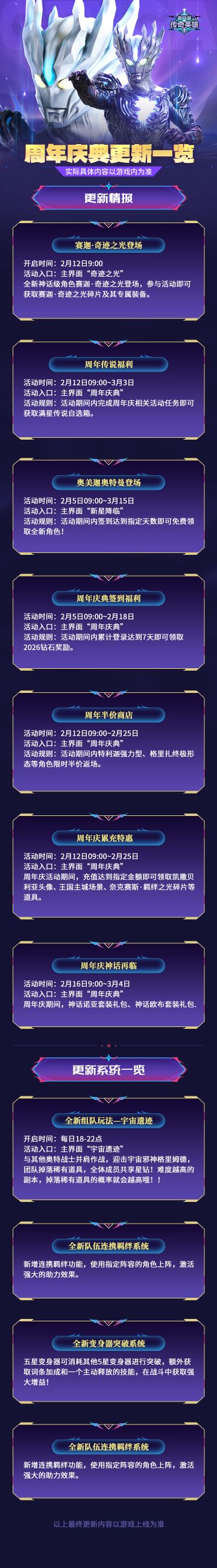 《奥特曼传奇英雄》周年庆要更新一览