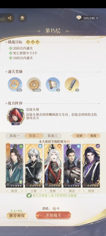 7-24过关阵容 卡了好多天,今天参考了up视频 BV1TM4y1h7vZ,攻略很详细,练度不算高,跟着up的思路,陈登换成王粲,没练陈登˃ʍ˂ 失败两三次,又看了遍up在boss只有两点的思路,在4w多血的时候保存婵修的大招,这时叠加了婵的伤害,差不多能打掉。 整局杨修运气都不好,只在最后一击杨修双5结束boss, 如果没有婵姐可以补刀也可以收割 终于通关,可以安心刷材料了