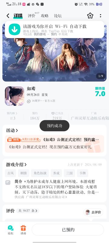 鸟在tap有专属预约福利