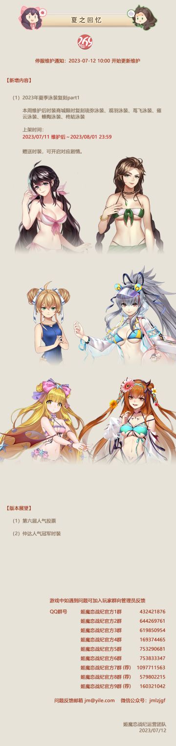 No.269夏之回忆《姬魔恋战纪》7月12日更新公告