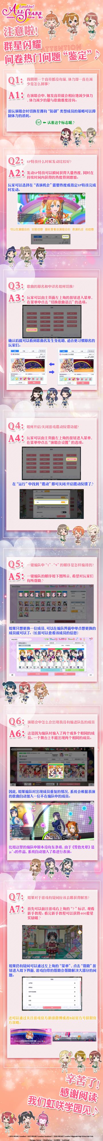 { "text": "《Love Live! 学园偶像季:群星闪耀》问卷热门问题“鉴定”♪\n\n各位虹咲学园的同学:\n\n我们根据闪耀测试收集来的问卷,回答了同学们相对最关心的几个问题。\n\n一起看看吧♪\n\n今后也请各位玩家多多支持《Love Live! 学园偶像季:群星闪耀》! \n", "raw_text": "" }