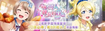 { "text": "两人弹奏的音色招募登场(前篇)!\n【举办时间】2021年8月23日 16:00~ 2021年8月31日 16:00\n欢迎来到「Love Live! 学园偶像季:群星闪耀」。\n\n「两人弹奏的音色招募【前篇】」來啦!\n本次招募活动分为前篇与后篇,且登场的新UR学园偶像各不相同。\n后篇登场的招募内容请于日后发布的「两人弹奏的音色招募【后篇】」相关公告中确认。\n\n在前篇招募中全新登场与精选的学园偶像如下!\n【UR】[久等了~]中须霞\n【SR】[哎呀……好美的花啊!]绚濑绘里\n\n※【UR】[久等了~]中须霞 将不会在后篇招募中登场。\n※前篇中登场的 【SR】[哎呀……好美的花啊!]绚濑绘里 也会在后篇招募中登场。\n\n使用编入了本次全新追加的学园偶像的队伍完成演唱会时,可获得的交换所活动「两人弹奏的音色」活动点数将会增加♪\n※详情请参考『交换所活动「两人弹奏的音色」登场!』的公告。\n\n特训还可解锁专属服装。\n\n此外,在「10次招募」中,必定会出现1位SR或以上的学园偶像!\n每天还有1次以爱星(付费)×10进行招募的机会喔!\n进行招募后,还可额外获得赠品「闪耀水晶」\n\n本次的新学园偶像将从登场的招募开始时,新增到道具交换所的闪耀水晶分页中。\n新增在闪耀水晶分页中的学园偶像,即使登场的该招募已结束,直到闪耀水晶的交换期限结束为止,都可以在道具交换所中进行交换。\n\n※可获得的闪耀水晶的颜色将会依招募而异。\n※前篇与后篇招募中可获得的闪耀水晶颜色相同。\n※每天限定进行1次的爱星(付费)招募无法获得闪耀水晶。\n\n注意事项\n・招募可能会获得相同的学园偶像。\n・每天限定进行1次的爱星(付费)招募,将于每天的0:00重置。\n・精选学园偶像的出现概率高于相同稀有度的其他学园偶像。\n・普通的1次招募与每天限定进行1次的爱星(付费)招募中的学园偶像出现概率相同。\n・闪耀水晶可用来在道具交换所交换各式各样的道具。请注意,在交换时间结束后,闪耀水晶将自动变为「闪耀碎片」。\n・新登场的学园偶像为先行开放的成员,有可能于今后预定举办的活动或招募中再次登场。\n・已公告的内容也可能有临时变更。\n\n今后也请各位玩家多多支持「Love Live! 学园偶像季:群星闪耀」!", "raw_text": "" }