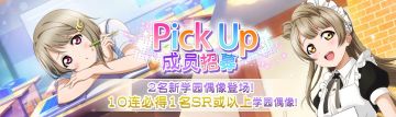{ "text": "霞与琴梨的Pick Up招募登场\n【举办时间】2021年12月1日 16:00~ 2021年12月7日 16:00\n欢迎来到「Love Live! 学园偶像季:群星闪耀」。\n\n「指定成员Pick Up招募」来啦!\n\n在「指定成员Pick Up招募」中,除了对象成员在此招募中新登场的学园偶像外,\n至今登场的该成员UR、SR学园偶像也都是pick up的对象!\n\n这次的对象成员如下!\n・中须霞\n・南琴梨\n\n※登场过的学园偶像pick up出现机率计算方式与新登场的学园偶像pick up出现机率不同。\n※详情请参考此招募的学园偶像出现机率内容。\n\n特训还可解锁专属服装。\n\n此外,在「10次招募」中,必定会出现1位SR或以上的学园偶像!\n每天还有3次以爱星(付费)×10进行招募的机会哦!\n进行招募后,还可额外获得赠品「闪耀水晶」。\n\n本次的新学园偶像将从登场的该招募开始时,新增到道具交换所的闪耀水晶分页中。\n即使此招募举办期间结束,直到闪耀水晶的交换期限结束为止,都可以在道具交换所中交换到这些新增至闪耀水晶分页的学园偶像。\n\n※可获得的闪耀水晶的颜色将会依招募而异。\n※每天限定进行3次的爱星(付费)招募无法获得闪耀水晶。\n\n注意事项\n・招募可能获得相同的学园偶像。\n・每天限定进行3次的爱星(付费)招募,将于每天的0:00重置。\n・精选学园偶像的出现概率高于相同稀有度的其他学园偶像。\n・普通的1次招募与每天限定进行3次的爱星(付费)招募中的学园偶像出现概率相同。\n・闪耀水晶可用来在道具交换所交换各式各样的道具。请注意,在交换时间结束后,闪耀水晶将自动变为「闪耀碎片」。\n・新登场的学园偶像为先行开放的成员,有可能于今后预定举办的活动或招募中再次登场。\n・已公告的内容也可能有临时变更。\n\n今后也请各位玩家多多支持「Love Live! 学园偶像季:群星闪耀」!", "raw_text": "" }