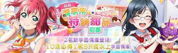 { "text": "请享用特制甜点♡招募登场(前篇)!\n【举办时间】2021年7月29日 16:00~ 2021年8月5日 16:00\n欢迎来到「Love Live! 学园偶像季:群星闪耀」。\n\n「请享用特制甜点♡招募登场【前篇】」來啦!\n\n本次招募将与「海上大作战」招募进行顺序的对调,「海上大作战」招募将于版本大更后登场!\n本次招募活动分为前篇与后篇,且登场的新UR学园偶像各不相同。\n后篇登场的招募内容请于日后发布的「请享用特制甜点♡招募【后篇】」相关公告中确认。\n\n在前篇招募中全新登场与精选的学园偶像如下!\n【UR】[好吃到不行]黑泽露比\n【SR】[我刚做好的自信之作♪]优木雪菜\n※【UR】[好吃到不行] 黑泽露比 将不会在后篇招募中登场。\n※前篇中登场的 【SR】[我刚做好的自信之作♪] 优木雪菜 也会在后篇招募中登场。\n\n使用编入了本次全新追加的学园偶像的队伍完成演唱会时,可获得的剧情活动「请享用特制甜点♡」活动点数将会增加♪\n※详情请参考『剧情活动「请享用特制甜点♡」登场!』的公告。\n\n特训还可解锁专属服装。\n\n此外,在「10次招募」中,必定会出现1位SR或以上的学园偶像!\n每天还有1次以爱星(付费)×10进行招募的机会喔!\n进行招募后,还可额外获得赠品「闪耀水晶」。\n※可获得的闪耀水晶的颜色将会依招募而异。\n※前篇与后篇招募中可获得的闪耀水晶颜色相同。\n※每天限定进行1次的爱星(付费)招募无法获得闪耀水晶。\n\n学园偶像情报\n※所示学园偶像的能力值为该成员达到最大等级、突破至最大界限,且解锁了所有特训格后的数值。\n※招募获得的学园偶像为1级、未突破界限,且处于未解锁特训格的状态,因此与下方的参数有所不同。\n※招募获得的学园偶像都是未觉醒的状态。\n\n注意事项\n・招募可能会获得相同的学园偶像。\n・每天限定进行1次的爱星(付费)招募,将于每天的0:00重置。\n・精选学园偶像的出现概率高于相同稀有度的其他学园偶像。\n・普通的1次招募与每天限定进行1次的爱星(付费)招募中的学园偶像出现概率相同。\n・闪耀水晶可用来在道具交换所交换各式各样的道具。请注意,在交换时间结束后,闪耀水晶将自动变为「闪耀碎片」。\n・新登场的学园偶像为先行开放的成员,有可能于今后预定举办的活动或招募中再次登场。\n・已公告的内容也可能有临时变更。\n\n今后也请各位玩家多多支持「Love Live! 学园偶像季:群星闪耀」!", "raw_text": "" }