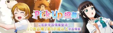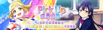 { "text": "鞠莉与海未的Pick Up招募登场\n【举办时间】2021年11月8日 16:00~ 2021年11月14日 16:00\n欢迎来到「Love Live! 学园偶像季:群星闪耀」。\n\n「指定成员Pick Up招募」来啦!\n\n在「指定成员Pick Up招募」中,除了对象成员在此招募中新登场的学园偶像外,\n至今登场的该成员UR、SR学园偶像也都是pick up的对象!\n\n这次的对象成员如下!\n・小原鞠莉\n・园田海未\n\n※登场过的学园偶像pick up出现机率计算方式与新登场的学园偶像pick up出现机率不同。\n※详情请参考此招募的学园偶像出现机率内容。\n\n特训还可解锁专属服装。\n\n此外,在「10次招募」中,必定会出现1位SR或以上的学园偶像!\n每天还有3次以爱星(付费)×10进行招募的机会哦!\n进行招募后,还可额外获得赠品「闪耀水晶」。\n\n本次的新学园偶像将从登场的该招募开始时,新增到道具交换所的闪耀水晶分页中。\n即使此招募举办期间结束,直到闪耀水晶的交换期限结束为止,都可以在道具交换所中交换到这些新增至闪耀水晶分页的学园偶像。\n\n※可获得的闪耀水晶的颜色将会依招募而异。\n※每天限定进行3次的爱星(付费)招募无法获得闪耀水晶。\n\n注意事项\n・招募可能获得相同的学园偶像。\n・每天限定进行3次的爱星(付费)招募,将于每天的0:00重置。\n・精选学园偶像的出现概率高于相同稀有度的其他学园偶像。\n・普通的1次招募与每天限定进行3次的爱星(付费)招募中的学园偶像出现概率相同。\n・闪耀水晶可用来在道具交换所交换各式各样的道具。请注意,在交换时间结束后,闪耀水晶将自动变为「闪耀碎片」。\n・新登场的学园偶像为先行开放的成员,有可能于今后预定举办的活动或招募中再次登场。\n・已公告的内容也可能有临时变更。\n\n今后也请各位玩家多多支持「Love Live! 学园偶像季:群星闪耀」!", "raw_text": "" }