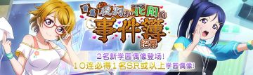 { "text": "夜羽和花阳的事件簿招募登场(前篇)!\n【举办时间】2021年12月16日 16:00~ 2021年12月23日 16:00\n欢迎来到「Love Live! 学园偶像季:群星闪耀」。\n\n「夜羽和花阳的事件簿【前篇】」来啦!\n本次招募活动分为前篇与后篇,且登场的新UR学园偶像各不相同。\n后篇登场的招募内容请于日后发布的「夜羽和花阳的事件簿【后篇】」相关公告中确认。\n\n在前篇招募中全新登场与精选的学园偶像如下!\n【UR】[我知道了!]小泉花阳\n【SR】[不要着急]松浦果南\n\n※【UR】[我知道了!]小泉花阳 将不会在后篇招募中登场。\n※前篇中登场的 【SR】[不要着急]松浦果南 也会在后篇招募中登场。\n\n使用编入了本次全新追加的学园偶像的队伍完成演唱会时,可获得的交换所活动「夜羽和花阳的事件簿」活动点数将会增加♪\n※详情请参考『交换所活动「夜羽和花阳的事件簿」登场!』的公告。\n\n特训还可解锁专属服装。\n\n此外,在「10次招募」中,必定会出现1位SR或以上的学园偶像!\n每天还有1次以爱星(付费)×10进行招募的机会喔!\n进行招募后,还可额外获得赠品「闪耀水晶」\n\n本次的新学园偶像将从登场的招募开始时,新增到道具交换所的闪耀水晶分页中。\n新增在闪耀水晶分页中的学园偶像,即使登场的该招募已结束,直到闪耀水晶的交换期限结束为止,都可以在道具交换所中进行交换。\n\n※可获得的闪耀水晶的颜色将会依招募而异。\n※前篇与后篇招募中可获得的闪耀水晶颜色相同。\n※每天限定进行1次的爱星(付费)招募无法获得闪耀水晶。\n\n注意事项\n・招募可能会获得相同的学园偶像。\n・每天限定进行1次的爱星(付费)招募,将于每天的0:00重置。\n・精选学园偶像的出现概率高于相同稀有度的其他学园偶像。\n・普通的1次招募与每天限定进行1次的爱星(付费)招募中的学园偶像出现概率相同。\n・闪耀水晶可用来在道具交换所交换各式各样的道具。请注意,在交换时间结束后,闪耀水晶将自动变为「闪耀碎片」。\n・新登场的学园偶像为先行开放的成员,有可能于今后预定举办的活动或招募中再次登场。\n・已公告的内容也可能有临时变更。\n\n今后也请各位玩家多多支持「Love Live! 学园偶像季:群星闪耀」!", "raw_text": "" }