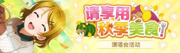{ "text": "剧情活动「请享用秋季美食!」登场!\n【举办时间】2022年2月11日 16:00~ 2022年2月17日 16:00\n欢迎来到「Love Live! 学园偶像季:群星闪耀」。\n\n剧情活动「请享用秋季美食!」来啦!\n\n玩法介绍\n在活动期间完成歌曲,即可累积活动点数。\n累积点数后除了可以欣赏活动的限定剧情,\n还能依据收集到的点数数量获得相应的奖励。\n\n使用活动pt提升道具就可获得更多的活动点数,记得用用看哦。\n\n此外,使用编入了「请享用秋季美食!招募【前篇】」和「请享用秋季美食!招募【后篇】」中登场的新学园偶像的队伍完成演唱会时,可获得的活动点数将会增加。\n\n活动奖励\n依据收集到的点数,可获得累计点数奖励与排名奖励。\n努力收集活动点数,挤进排名前段吧!\n\n※所记载的学园偶像的能力值,为该成员达到最大等级、突破至最大界限,且解锁了所有特训格后的数值。\n※活动奖励的学园偶像为先行开放的成员,有可能在今后预定举办的活动或招募再次登场。\n※其他奖励请于活动奖励列表页面确认。\n\n拥有加成效果的学园偶像\n只要使用编入了下方学园偶像的队伍完成演唱会,获得的活动点数就会增加。\n\n可增加活动点数的学园偶像\n20%(最高35%)【UR】[嘿咻!嘿咻!]国木田花丸 (只会在前篇的招募中登场)\n20%(最高35%)【UR】[这个鱼好好吃!]艾玛‧维尔德 (只会在后篇的招募中登场)\n10%(最高25%)【SR】[脚滑了一下就跌进河里了……]园田海未 \n15%(最高30%)【UR】[我们也采了很多回来哦]小泉花阳 \n7%(最高22%)【SR】[露比已经走不动了啦……]黑泽露比 \n7%(最高22%)【SR】[小彼方连睡觉的空闲都没有哦~!]近江彼方 \n\n关于加成效果,可点击活动首页的加成按钮进行确认。\n\n歌曲的先行开放情报\n本次活动先行开放歌曲为「虹色的热情!(原名:虹色Passions!)」!\n本歌曲可以在之后新增的第25章剧情登场之前先行游玩。\n\n在剧情第25章新增后,完成该演唱会舞台后即可解锁,之后便可至普通歌曲中游玩。\n\n注意事项\n①关于活动\n・活动剧情共7话。请注意,2022年2月17日 16:00以后剧情将无法继续阅读。\n・若完成演唱会时活动已结束,将有可能无法正常获得活动点数。在活动即将结束前进行演唱会时请特别注意。\n・通过活动奖励获得的学园偶像为1级、未突破界限,且所有特训格处于未解锁的状态。\n・所获得的奖励将被送到礼物盒。\n・排名结果的公布及排名奖励的发放时间预计为 2022年2月17日 18:00之后。\n・今后举办的活动奖励未必与此次相同。\n\n②关于加成效果\n・「可增加活动点数的学园偶像」中所示最大值为突破最高界限后的增加率。每次突破界限时增加+5%,+4%,+3%...\n・加成效果不会因为学园偶像的觉醒而变化。\n・活动pt提升道具不会增加因演唱会编队获得的加成点数。\n\n③关于活动pt提升道具\n・将出现在2022年2月12日 00:00更新的每日课题达成奖励中。\n・专用的活动pt提升道具仅可在本次活动中使用。请注意,在下次举办的活动中将无法使用。\n\n④关于先行开放歌曲\n・于本活动中登场的先行开放歌曲为活动用的特别版本,其属性及特效等与追加为普通歌曲时有所不同。\n\n⑤关于公告\n・已公告的内容也可能有临时变更。\n\n今后也请继续支持「Love Live! 学园偶像季:群星闪耀」。", "raw_text": "" }