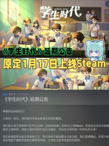 原定1.17上线的《学生时代》延期公告