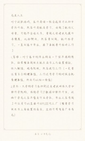 完美人生 攻略