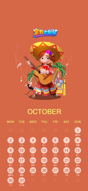 宝石妙妙屋丨十月日历壁纸请查收!