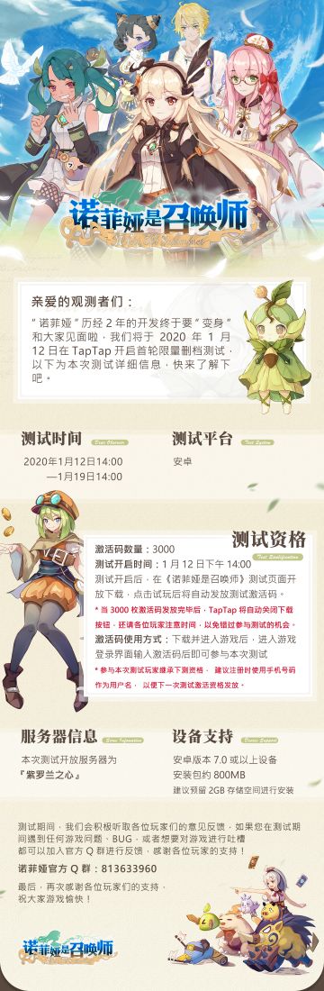 《诺菲娅是召唤师》测试激活资格补充公告