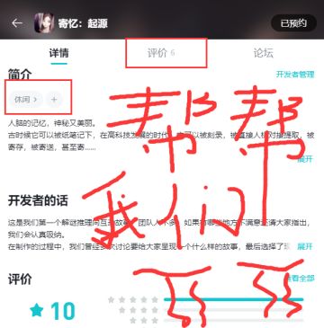 各位小伙伴,帮帮《寄忆:起源》吧~~