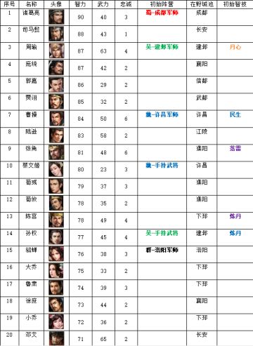 所有智力达到50的智将排行榜