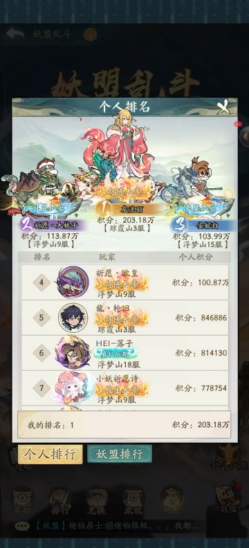 妖盟乱斗轻松第一,九幽一打八……