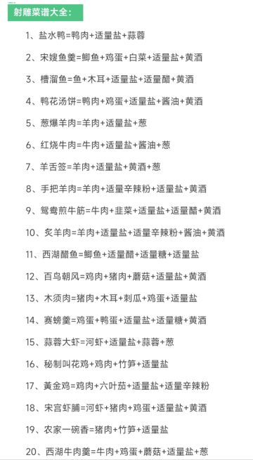 【活动攻略】✨射雕食谱大全✨拿去做菜