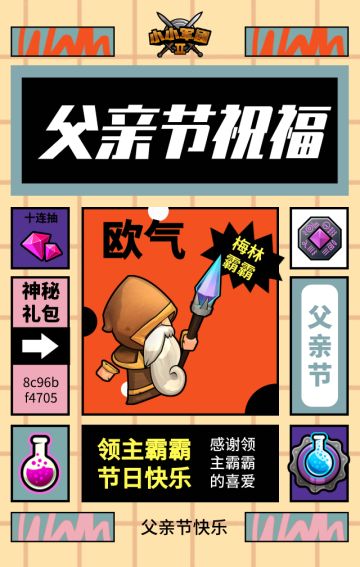 { "text": "来自父亲节的祝福~\n(礼包码:8c96bf4705)", "raw_text": "" }