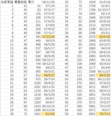 船员升级所需经验