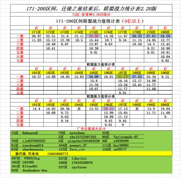 171-200区间,联盟战力统计表2.20版