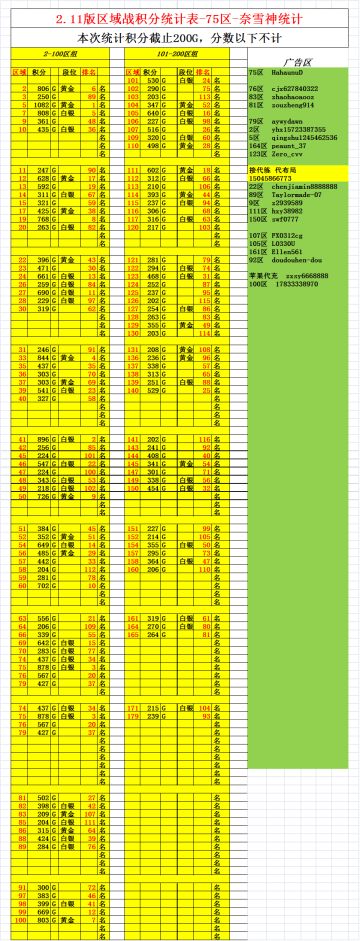 2.5版2-100区联盟战力值统计表
